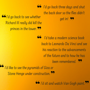 I’d go to ancient Greece, 4th century BC – the most advanced civilisation on Earth. I’d witness architecture, politics, literature and culture unlike anything the world had ever seen before.(4)