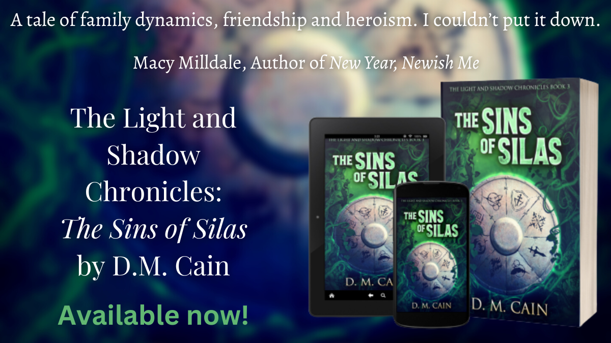 The Sins of Silas is the third full-length book in The Light and Shadow Chronicles. This full-length novel explores the effects of the ongoing war on a nihilistic young man not blessed with immortality, despite his privileged position in the Brotherhood of Shadow.